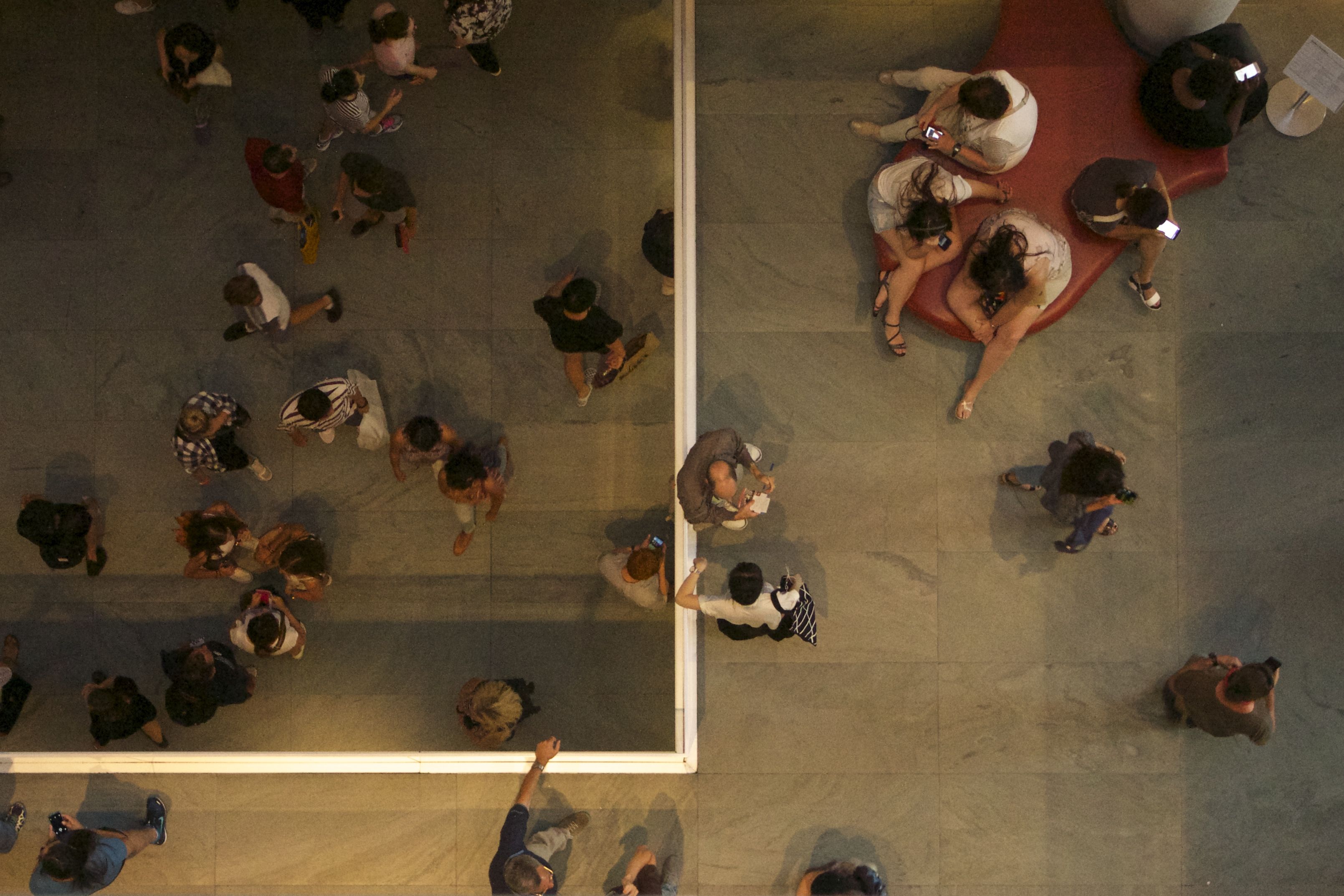 During my trip to New York, I had the chance to visit the Modern of Museum Art. I had previously been to the one in San Francisco, and I had high expectations for New York's MOMA. My sister and I decided to go Friday because there was a promotion that allowed free admission. Big mistake. The place was packed. It was so crowded that even the white walls of the exhibits felt claustrophobic. You had to elbow your way through the crowd to get a glimpse of famous art pieces. What a waste. We wrapped up our visit once we reached the top floor of the exhibit, and as my sister headed off to the restroom, I waited for her by the rails. That's when I saw it. I took my camera out, and snapped the moment of artistic bliss I had been looking for the whole time; I just needed to look down.