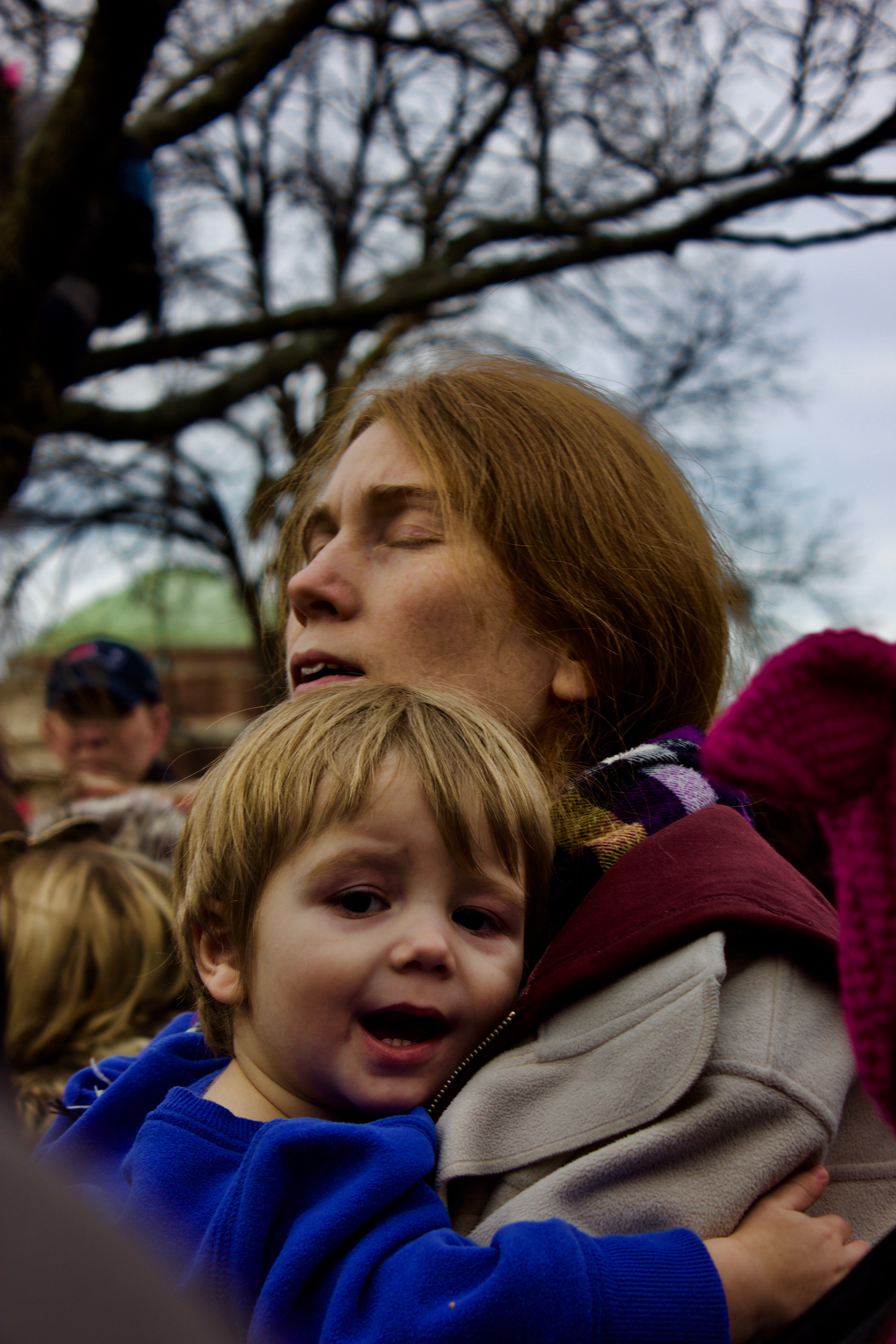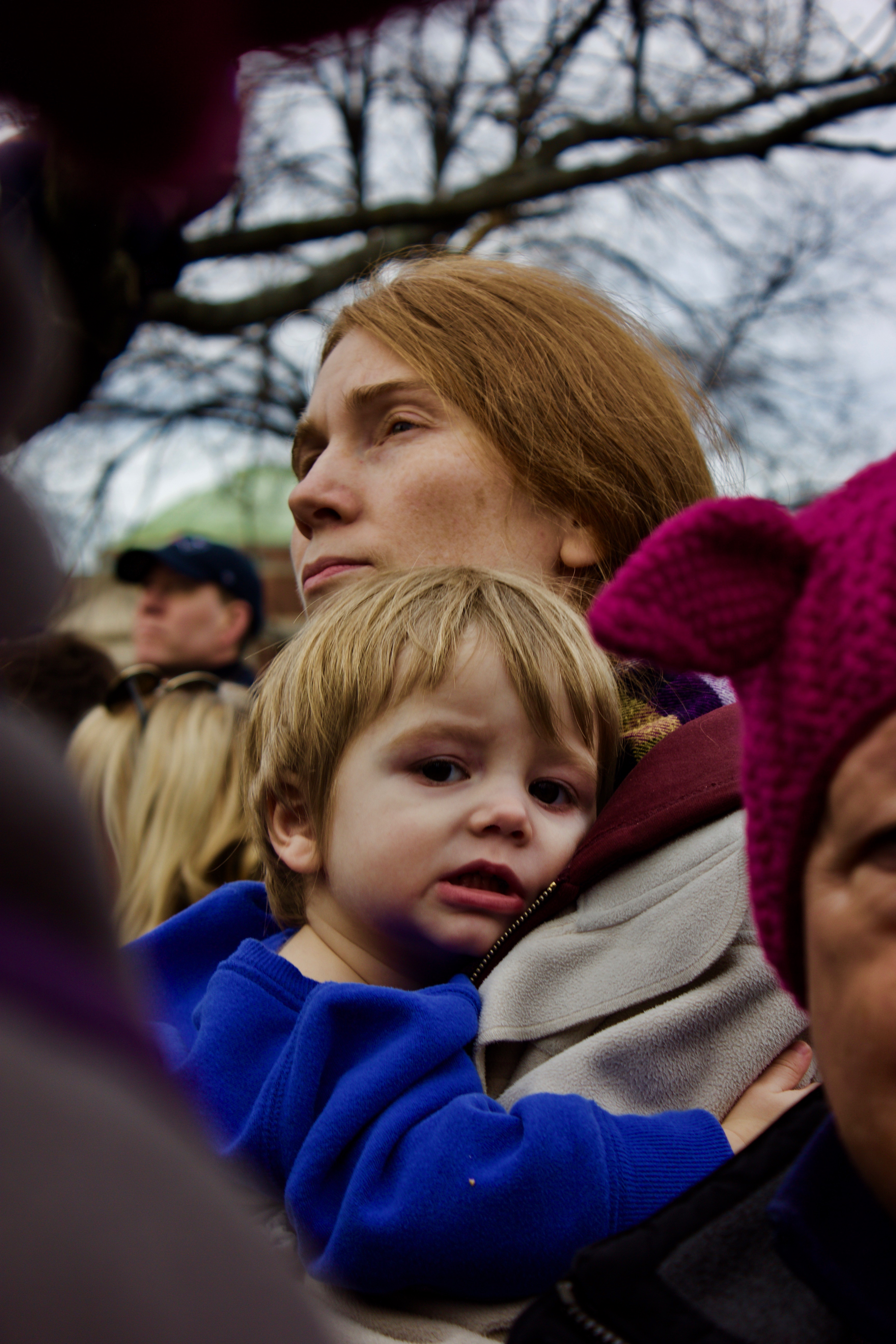 I imagined the woman raising and teaching her son lessons that so many boys, and unfortunately public officials, have failed to learn. 'Boys will be boys' won't be an excuse. It's cold, it's crowded, and a mother has chosen to bring her son to the Women's March to listen to the stories of other women. The son grabs his mother tighter. She knows her son will do good.